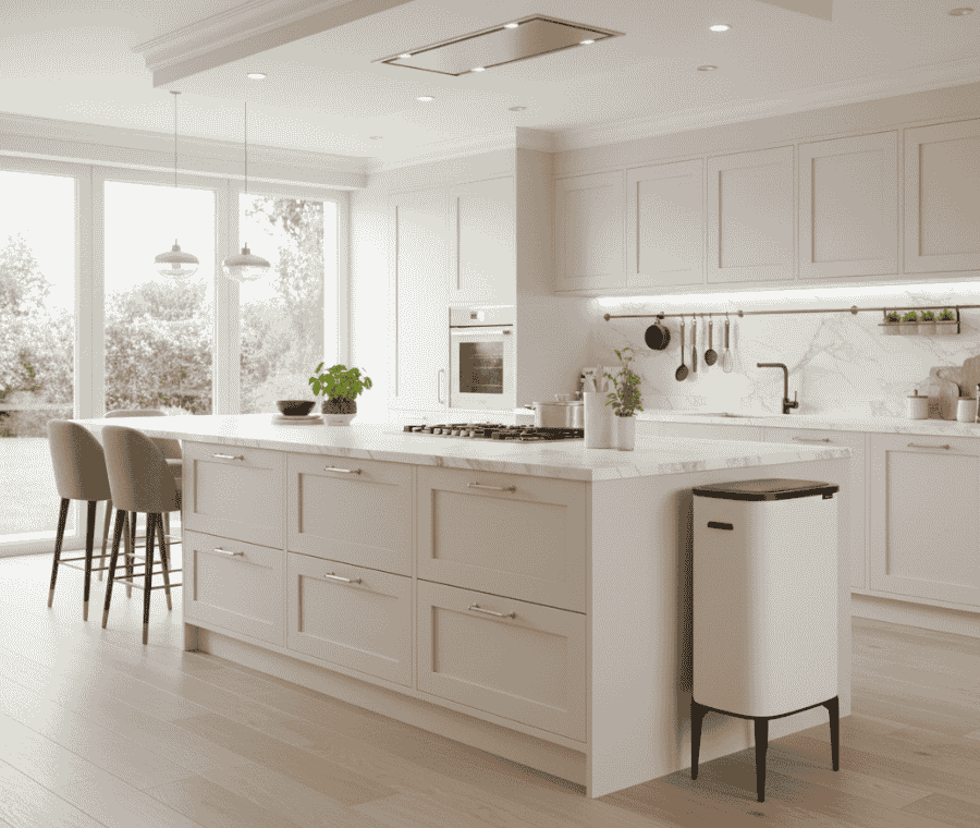 מנגנון סגירה שקטה ועיצוב חכם השומר על מראה נקי ומסודר גם במטבח פעיל. פתרון פרקטי