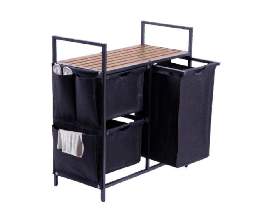 מעמד אחסון 3 תאים מבמבוק עם סלי בד נשלפים