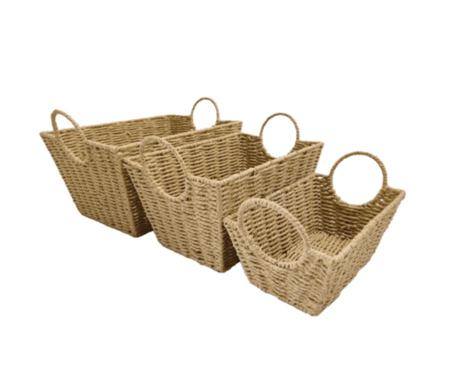 3 סלי אחסון חוט טבעי עם ידיות