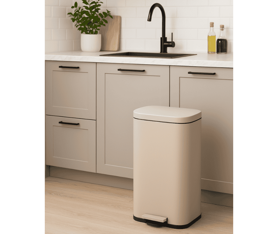 פח אשפה מעוצב בנפח 30 ליטר בצבע מוקה אלגנטי, אידיאלי למטבח, אמבטיה או משרד.